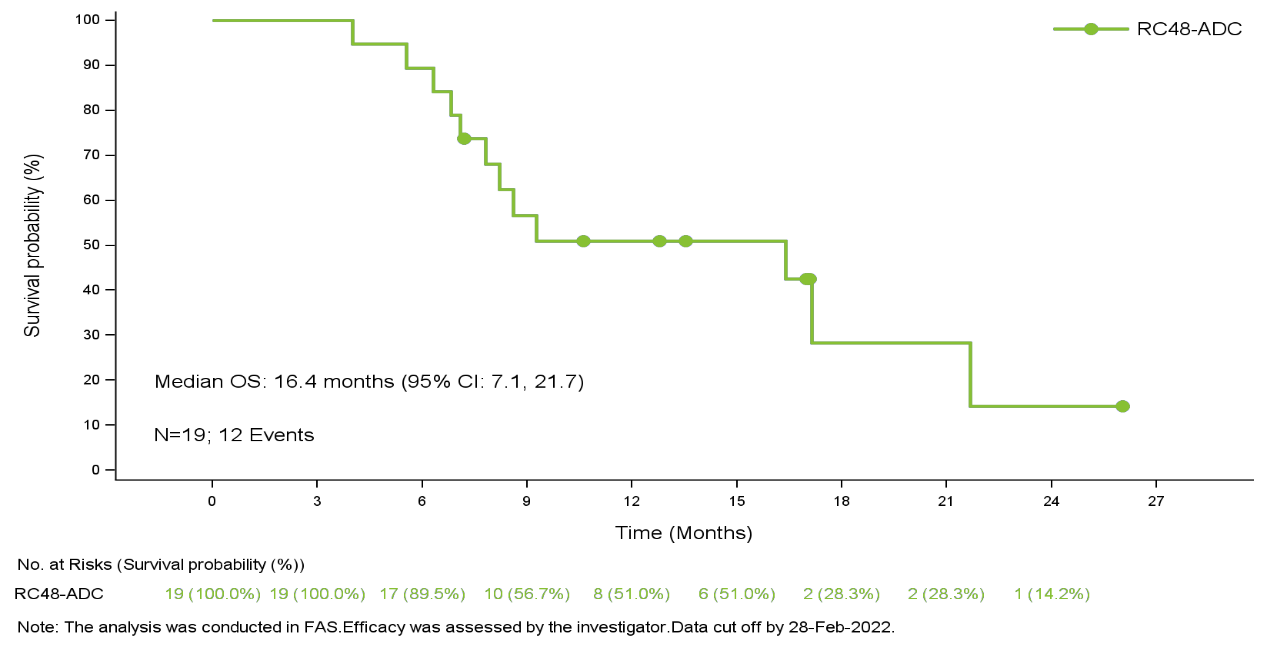 本项Ⅱ期临床试验证实了RC48对HER2阴性晚期尿路上皮癌患者的疗效,特别是IHC 1+患者的疗效,总体的中位OS为16.4个月。大多数治疗相关不良事件为1-2级,与以往的RC48单药治疗研究相似。RC48不良反应可耐受、可控。RC48-ADC在HER2阴性晚期尿路上皮癌中安全有效。