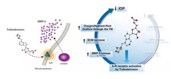 Trabodenoson(INO-8875)是first in class的高选择性腺苷A1受体激动剂,可以扩张眼部小梁网,促进房水流出,从而发挥降低眼压作用。因为其作用机制新颖,同时具有每日1次给药的便捷性,被视为最有前景的青光眼药物之一。