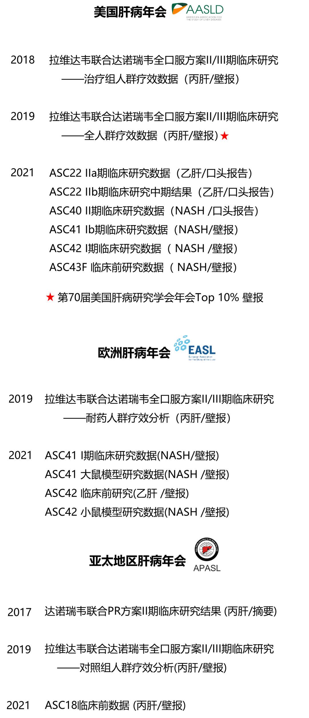 歌礼的研究成果在美国肝病年会、欧洲肝病年会和亚太地区肝病年会等国际顶级学会的年会上作壁报展示和口头报告;达诺瑞韦Ⅱ期临床研究获第24届亚太肝病学会年会最高荣誉—大会主席特邀主题报告;达诺瑞韦Ⅲ期临床研究获中华医学会第十五次全国感染病学学术会议一等奖。