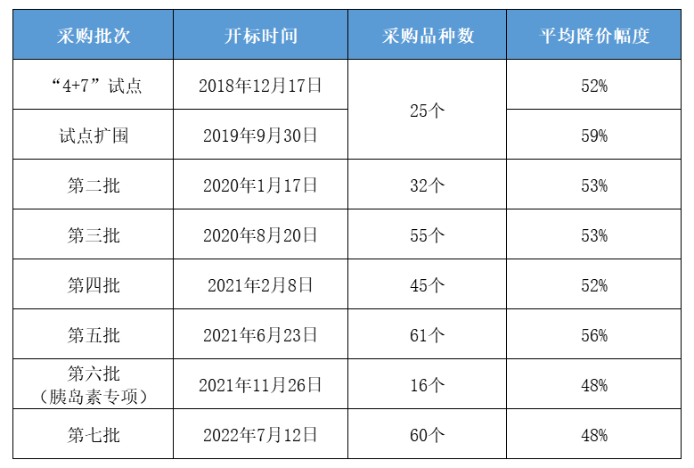 至此,国家共组织七批集中带量采购,累计成功采购药品达294种。