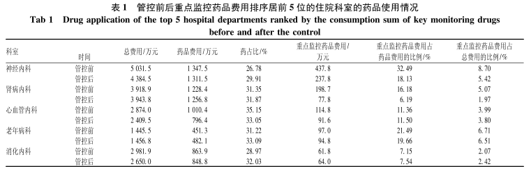 案例二:来自武汉市第一医院的杨香瑜等“基于疾病诊断相关分组实施重点监控药品精细化管理的实践”一文中,对于重点监控药品使用最多的五个科室进行干预和分析,结果如下: