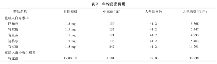 案例三:来自首都医科大学附属北京天坛医院的官海静等“基于医院视角的化疗致严重血小板减少症治疗药物的预算影响分析”一文中,发现肿瘤化疗所致血小板减少症是常见的并发症之一。用于治疗的药物包括:重组人白介素-l1和重组人血小板生成素。两者均已上市并进入医保目录。对于各厂家的使用情况和费用情况,