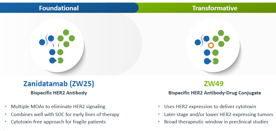 ZW49是Zymeworks在HER2双抗ZW25基础上研发的HER2双抗ADC药物。小鼠肿瘤模型中,ZW49表现出比T-DM1和DS-8201更强的抗肿瘤活性。2018年11月,百济神州以4000万美元预付款+3.9亿美元里程碑金额获得这两款药物的中国区权益。目前ZW49还未在国内申报临床。