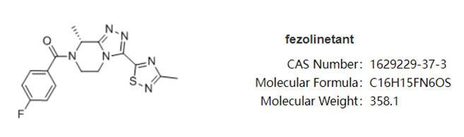 fezolinetant(非唑奈坦)是安斯泰来自主研发的一款选择性神经激肽3受体(NK3)拮抗剂,主要通过阻断NKB与KNDy神经元的结合,调节下丘脑体温调节中枢的神经元活动,从而治疗与更年期相关的VMS。