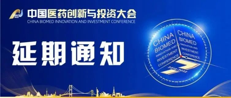 根据目前国内疫情防控政策最新要求,经主办单位慎重考虑决定:原定于2022年9月23-25日在苏州召开的第七届中国医药创新与投资大会将延期举办,会议具体日期择期公布。由此给各位专家、代表及观众带来的任何不便深表歉意。衷心感谢大家多年来对中国医药创新的支持与关注,期待不久再次相聚,共话创新。
