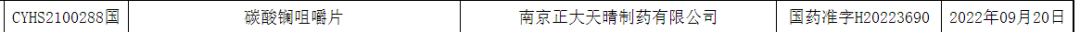 近日,南京正大天晴制药的碳酸镧咀嚼片获批上市,视同通过一致性评价。这是国产第3家获批生产该品种的企业,碳酸镧咀嚼片也是南京正大天晴获批的首款咀嚼片。