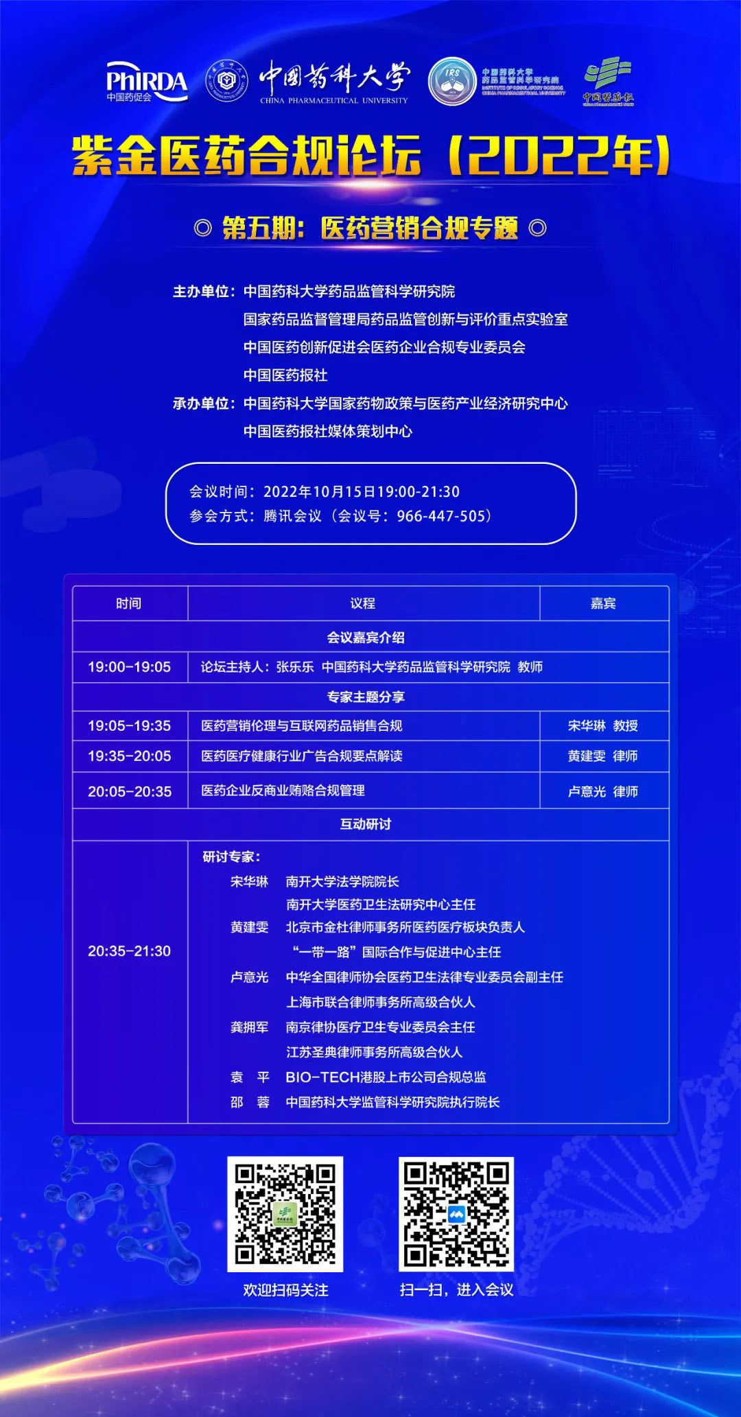 会议时间:2022年10月15日 19:00-21:30