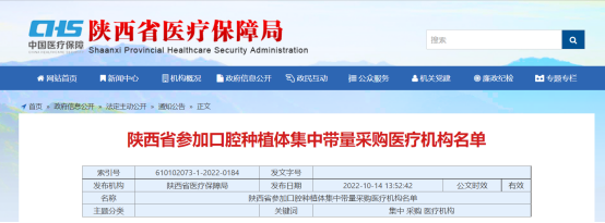 时间向前一个月,9月22日,四川省医保局发布《口腔种植体系统省际联盟集中带量采购公告(第1号)》,开启了口腔领域集采的大门。
