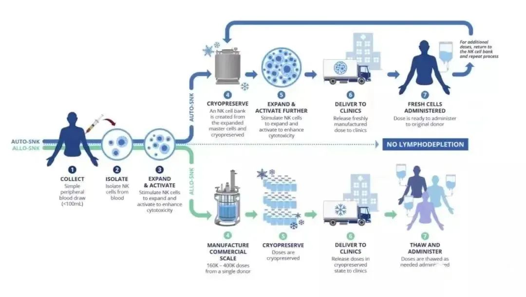 NKGen生物技术公司副主席Paul Song医学博士称,SNK02是首个冷冻保存的异体NK细胞疗法,与其他细胞疗法不同的是,SNK02在给药前不需要清淋处理。