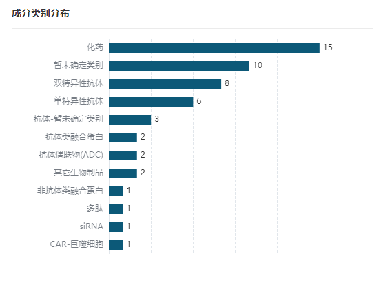除 QL1706 之外,CD20/CD37 单抗复方 QLP31907 也是基于 MabPair 平台开发的双抗。在已披露类别和靶点的早期管线中,加之临床前的 18 款,生物新药的布局已经超过了化药。尤以双抗为多,其余还布局了一些新兴领域,比如 siRNA、CAR-巨噬细胞等。齐鲁制药早期临床新药类别分布(*分期:临床前+申请临床+获批临床+ I 期临床 + II 期临床)