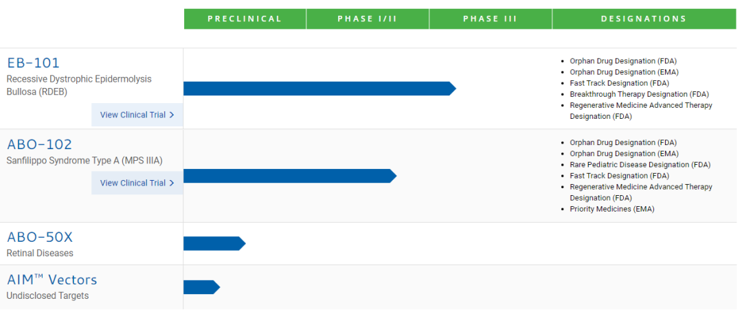 ▲Abeona研发管线(图片来源:Abeona官方网站)