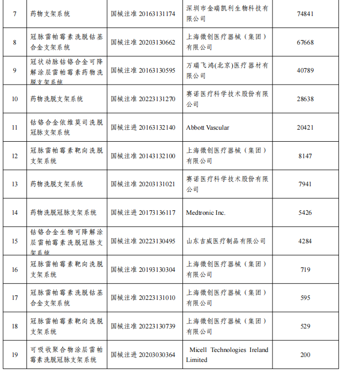 集采实施近两年来各支架厂家的格局变化