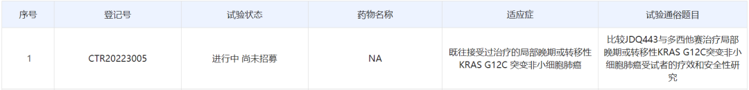 11月15日,中国药物临床试验登记与信息公示平台官网公示,诺华(Novartis)启动一项3期国际多中心(含中国)临床试验,以比较JDQ443与多西他赛治疗局部晚期或转移性KRAS G12C突变非小细胞肺癌(NSCLC)受试者的疗效和安全性。该研究的中国主要研究者为广东省人民医院吴一龙教授。公开资料显示,JDQ443是一款KRAS G12C共价抑制剂,能够不可逆地将KRAS G12C锁定在失活状态。