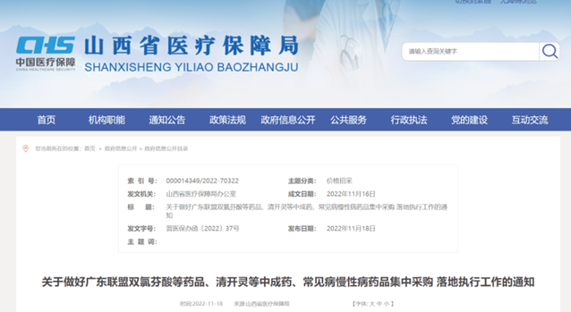 日前,山西省药械集中招标采购中心发布《关于组织开展广东联盟双氯芬酸等药品、清开灵等中成药中选及备选品种集采待分配量确认工作的通知》,山西省成为第一个发出通知率先全面执行广东联盟三批集采省份。