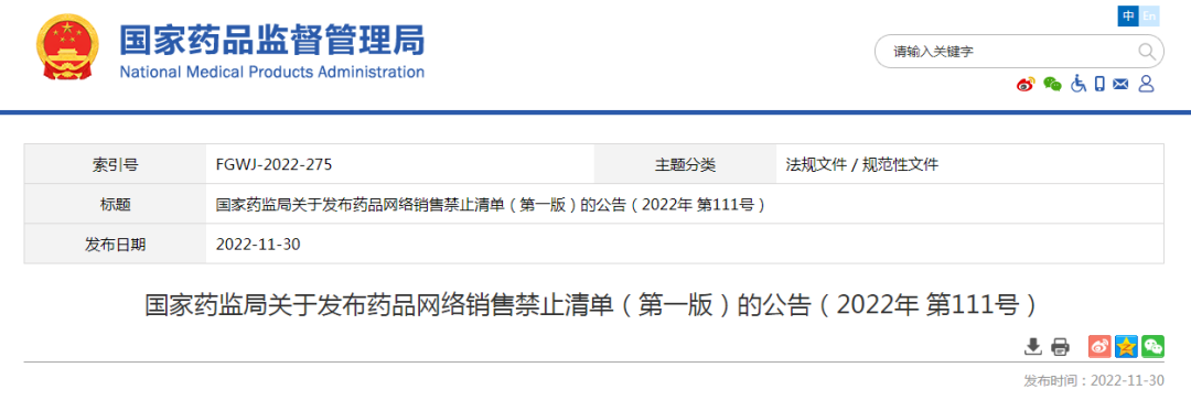 国家药监局关于发布药品网络销售禁止清单(第一版)的公告