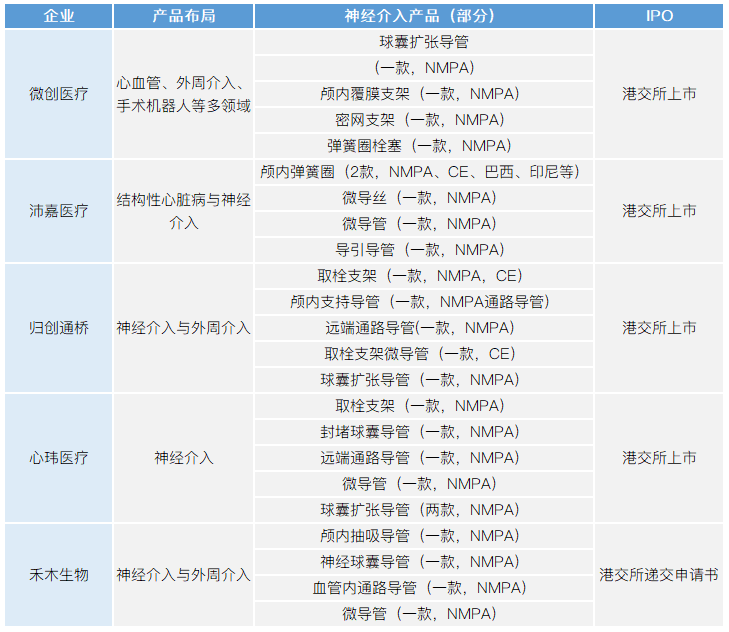 随着微创手术的持续发展,以及国家政策的支持,神经介入类医疗器械有很大的发展空间。在我国神经介入耗材市场的外资企业代表有美敦力、库克、雅培、波科等,国内企业有微创、沛嘉医疗、归创通桥、心玮医疗等。
