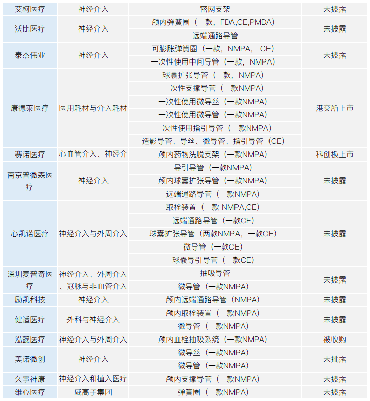 据贝壳社不完全梳理,目前国内的神经介入赛道入局者,分为多管线布局的平台型企业与专注于神经介入领域的企业,共有18家企业的多款产品在国内外获得审批。