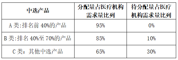 分量规则充分体现量价挂钩,为达到充分竞争的目的,对约定采购量进行梯度分配,分成A\B\C三个不同价格区间组,不同组的企业带量比列不同,充分体现“量价挂钩,以量换价”——“严”原则。