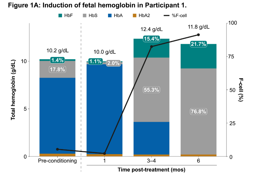 总的来说,初步数据显示,在接受治疗后,两名患者均有获益,两者的HbF水平均有临床意义的增加,并且该疗法安全性可控,有望成为严重SCD患者一种潜在的治疗选择。