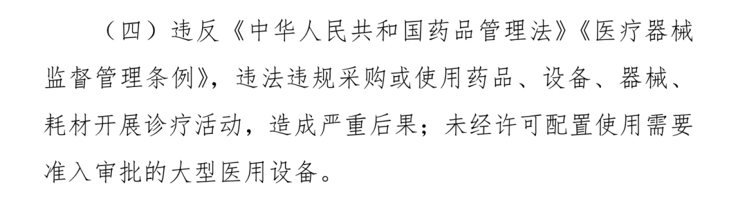 新版三级医院评审继续密切关注违规采购、恶意骗保的违法行为。在前置要求部分,共设 3 节 25 条评审前置条款,其中有发生重大价格或收费违法事件,以及恶意骗取医保基金;以及违反《中华人民共和国药品管理法》《医疗器械监督管理条例》,违法违规采购或使用药品、设备、器械、耗材开展诊疗活动,造成严重后果;未经许可配置使用需要准入审批的大型医用设备。