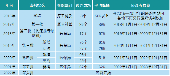 以前国家医保目录短则4年、长则8年才调整一次。现在一年一度的医保谈判,大大加快了创新药进入医保的速度。近年来,我国陆续开展了五批及一次试点医保谈判。
