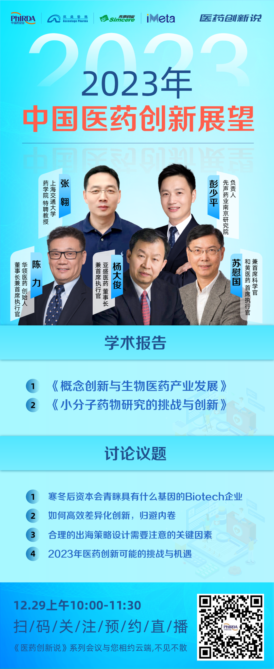 助力医药创新,热议行业发展。12月29日(周四)上午10点,医药创新说系列主题直播与您再次相约!