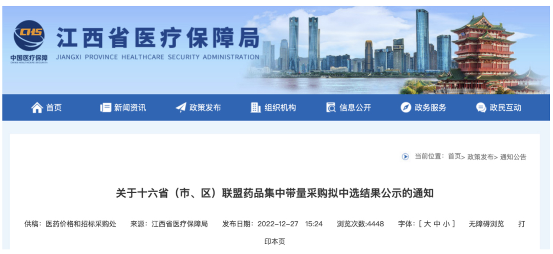 12月27日,由江西省牵头的16省集采联盟对拟中选结果进行了公示,其中科 伦药业、齐鲁制药、罗欣药业、倍特药业等14家药企成为本次集采的赢家。