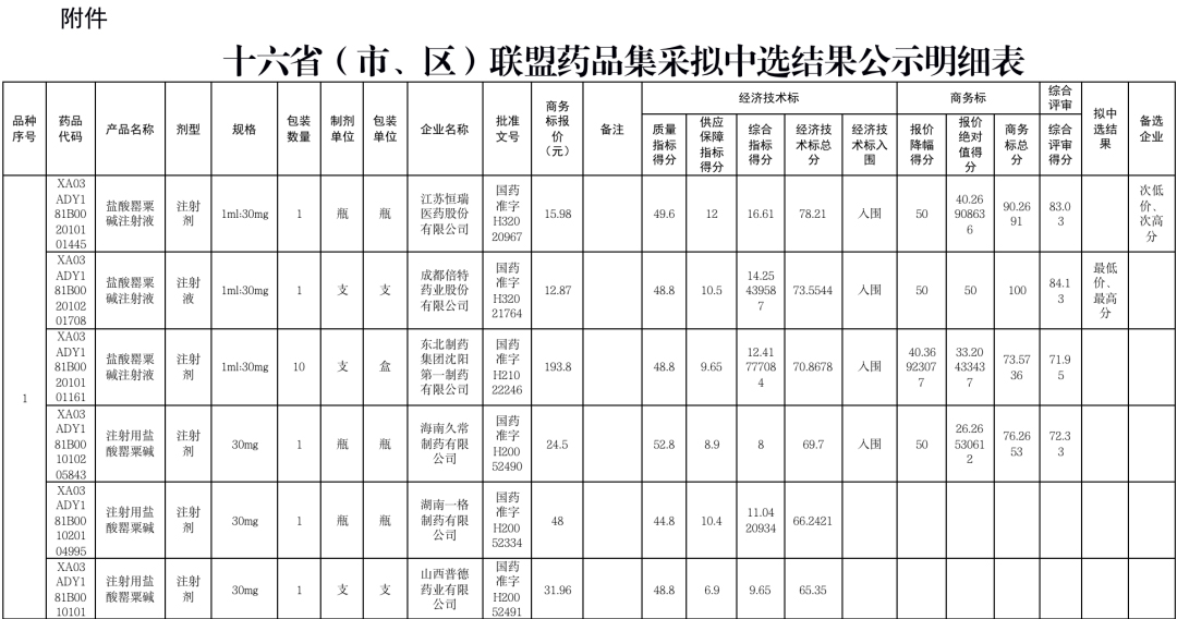 此次盐酸罂粟碱注射液共有8家企业展开竞争,其中恒瑞医药在经济技术评分中质量指标、供应保障指标得分领先,但在价格方面比成都倍特高出3块多钱,最终综合得分比成都倍特特低1.1分惜败,以次低价、次高分获得备选资格。