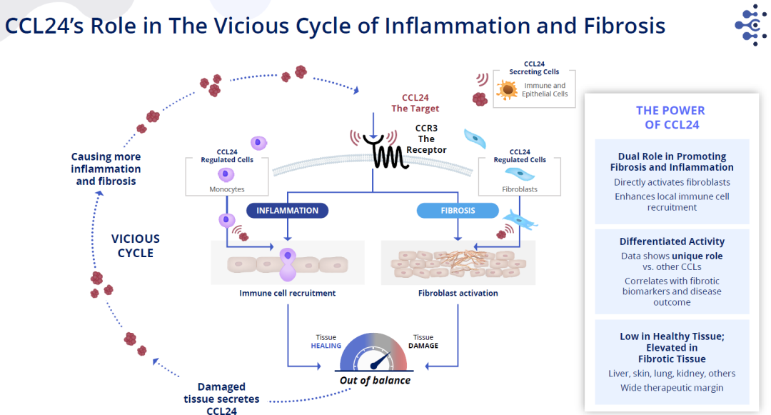 CCL24发挥促进纤维化和炎症反应的双重作用,因而成为治疗NASH的重要潜在靶点。