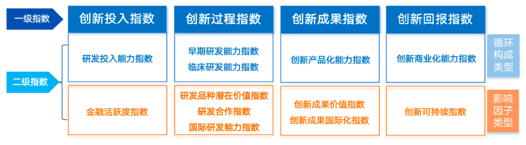 2022年底,中国医药创新促进会(以下简称“中国药促会”)发起了“中国医药企业创新能力指数”(以下简称“创新能力指数”) 项目,在医药创新领域权威专家及会员企业的共同努力下,初步搭建了评估医药企业创新能力指数体系,将从创新投入、创新过程、创新成果、创新回报等四个方面对近五年上市的新型生物制药企业(EBP)进行追踪研究,以绘制医药企业创新能力变化趋势,以期寻找当下医药创新企业发展陷入瓶颈期的主要原因,助力国产医药创新产业健康可持续发展。