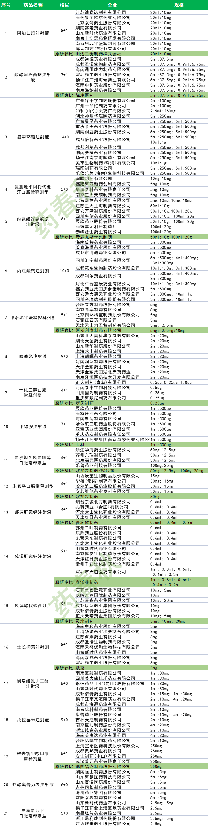第八批集采将过评门槛从3+1或4+0提高到4+1或5+0,所以产品数量比第七批61个少了近三分之一,有原研或参比制剂竞争的产品为22个。
