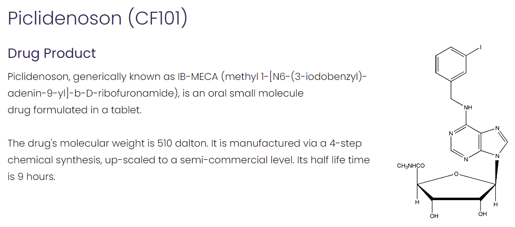 piclidenoson是Can-Fite开发的一种新型、首创、可口服的小分子腺苷A3受体(A3R)激动剂,通过抑制炎症细胞因子白细胞介素17和23(IL-17和IL-23)的表达以及诱导致病性皮肤细胞角化细胞的凋亡达到治疗效果。2018年8月,康哲药业与Can-Fite达成协议,获得piclidenoson和另一款A3R激动剂namodenoson在中国的开发、注册和商业化权益。