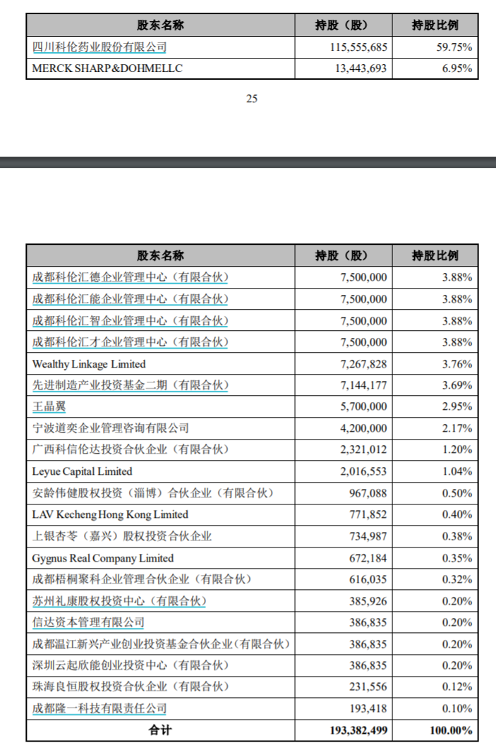 科伦博泰股权结构 图片来源:上市公司公告值得注意的是,跨国药企默沙东持有科伦博泰6.95%的股份,是科伦博泰的第二大股东。