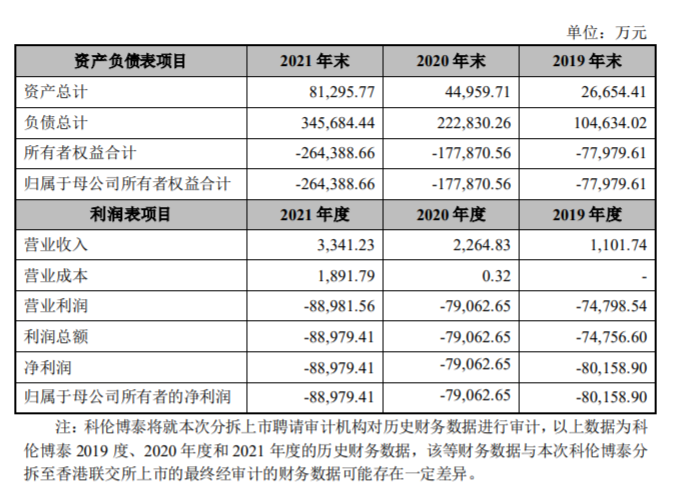 预案公告显示,2019年、2020年及2021年,科伦博泰的营业收入为1101.74万元、2264.83万元及3341.23万元,归母净利润分别为-8.02亿元、-7.91亿元及-8.90亿元。