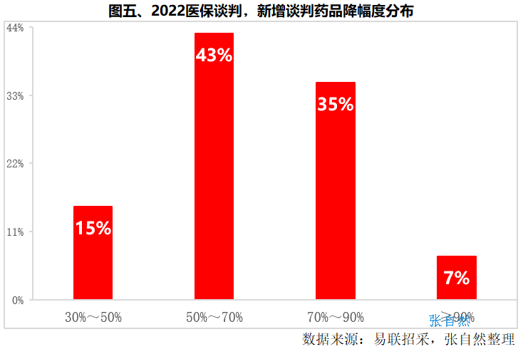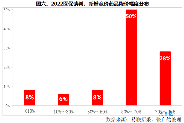 与谈判品种相似,有多达一半的竞价品种的降幅也位于50%~70%之间。