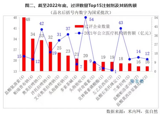 过评企业数量Top15注射剂已被国采(详见图二)。