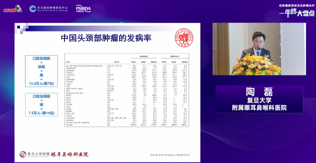 首先,复旦大学附属眼耳鼻喉科医院陶磊教授围绕“以功能保留为策略的头颈部肿瘤诊疗思路”进行了主题分享,强调了喉癌生存率是首先考虑的治疗因素,局晚期喉癌需要采取手术与放疗等多手段的综合治疗。