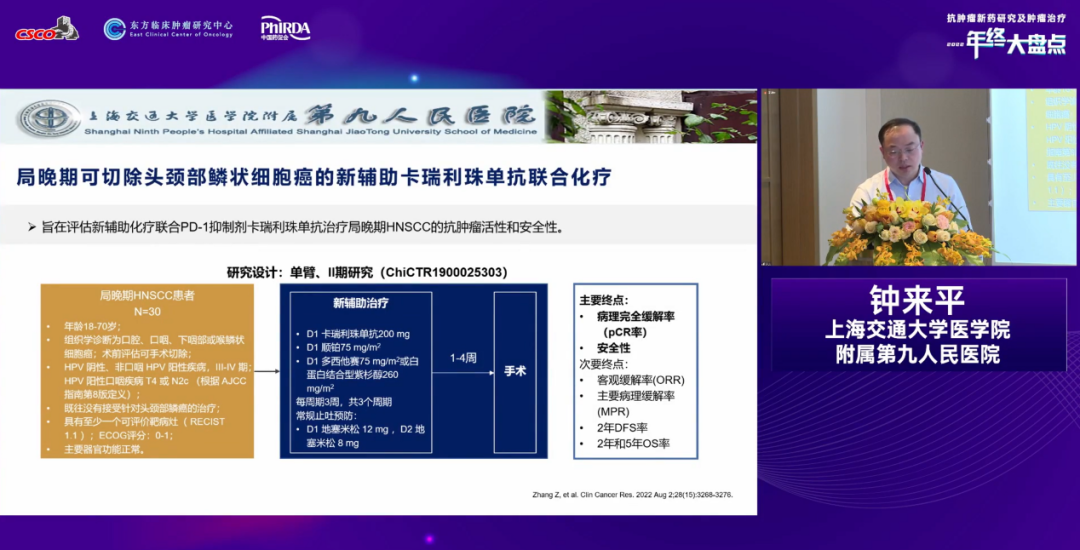接着,上海交通大学医学院附属第九人民医院钟来平教授就“新辅助免疫治疗进展”进行了授课,分析了KEYNOTE-689、IMSTAR-HN研究。