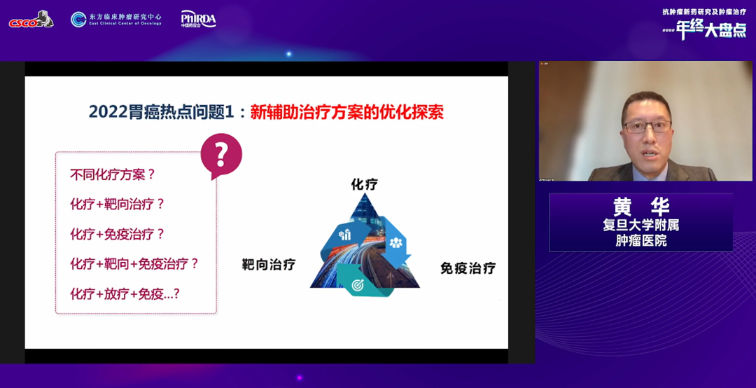 首先,邀请复旦大学附属肿瘤医院黄华教授与我们一起回顾“2022胃癌手术与新辅助年度盘点”,分析了MATCH、DANTE、PANDA等研究,尤其关注胃癌微创、淋巴导航手术。