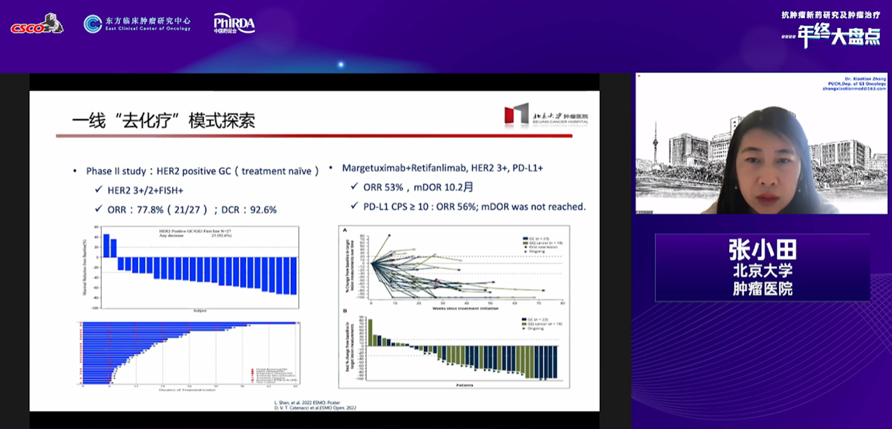 紧接着,由北京大学肿瘤医院张小田教授为我们讲解“2022胃癌姑息治疗与免疫治疗年度盘点”,讨论了靶向Claudin18.2赛道拥挤,如何选择优化方案。
