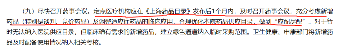 《通知》要求尽快召开药事会议。定点医疗机构应在《上海药品目录》发布后1个月内,及时召开药事会议,充分考虑新增药品(特别是谈判、竞价药品)及调整适应症药品的临床应用,合理优化本院药品供应目录,做到“应配尽配”。对于暂时无法纳入医院供应目录,但临床确有需求的新增药品,建立绿色通道纳入临时采购范围。卫生健康、申康部门将新增药品及时配备使用情况纳入相关考核。