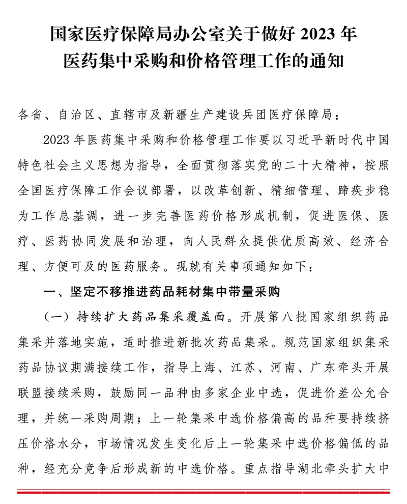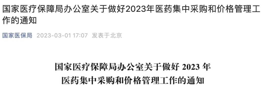 附《国家医疗保障局办公室关于做好2023年医药集中采购和价格管理工作的通知》全文