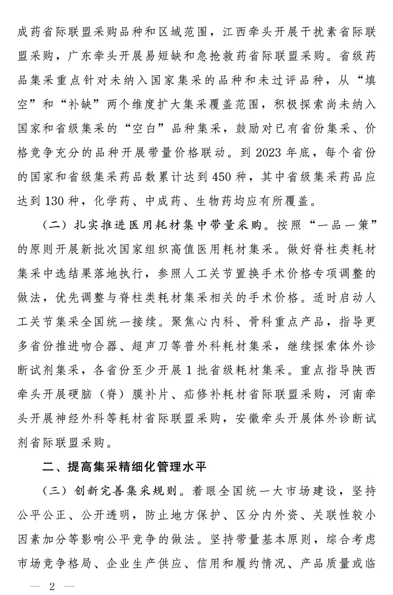 到2023年底,每个省份的国家和省级集采药品数累计达到450种,其中省级集采药品应达到130种,化学药、中成药、生物药均应有所覆盖。