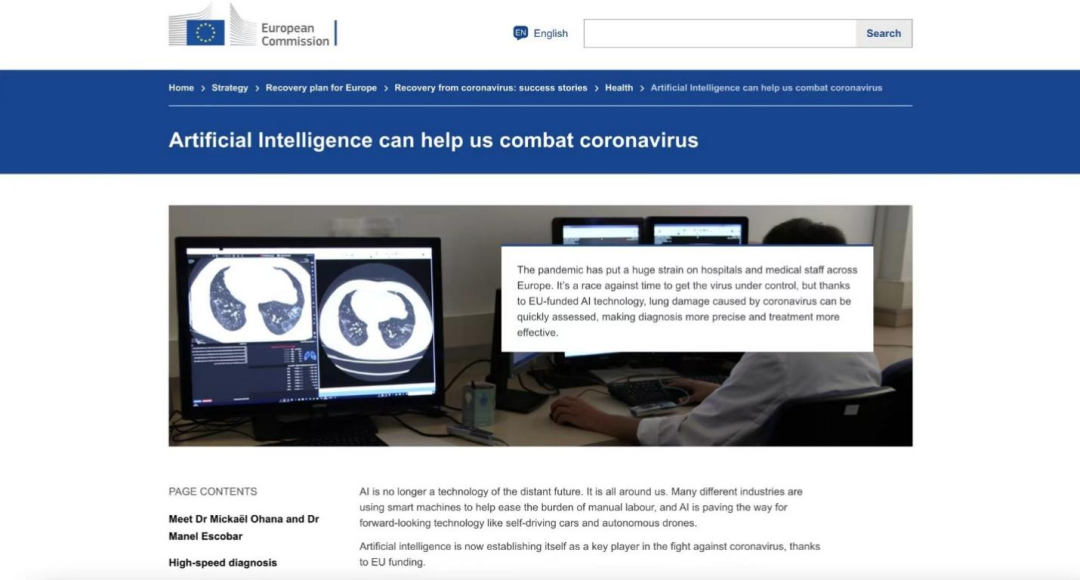 ▲欧盟官网专题报道推想在欧洲疫情防控中发挥的关键作用