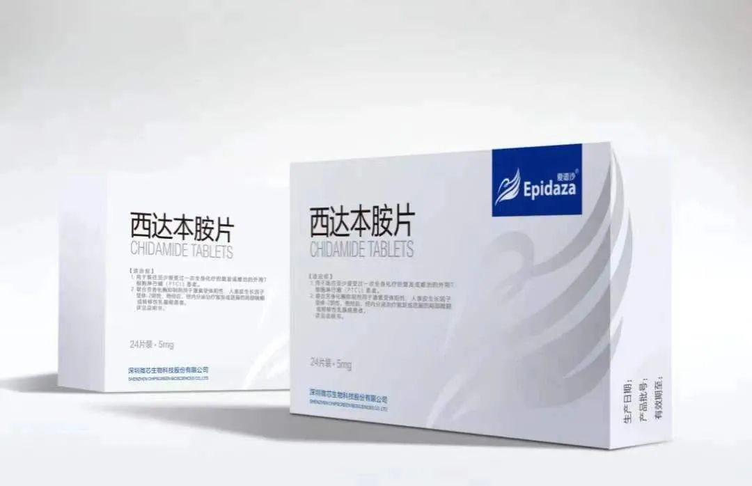 西达本胺(Chidamide;商品名为“爱谱沙/Epidaza”),国家1类原创新药,是微芯生物独家发现的新分子实体药物,机制新颖;作为领域唯一可通过口服的亚型选择性组蛋白去乙酰化酶(HDAC)抑制剂,西达本胺可单独或联合其他药物解决严重威胁人类健康的恶性肿瘤等重大疾病。2014年12月获批用于治疗复发或难治性外周T细胞淋巴瘤(PTCL)患者,2019年11月18日获批新适应症,用于联合芳香化酶抑制剂治疗激素受体阳性、人表皮生长因子受体-2阴性、绝经后、经内分泌治疗复发或进展的局部晚期或转移性乳腺癌患者。2021年ATL(成人白血病)和PTCL(外周T细胞淋巴瘤)先后在日本获批上市。作为HDAC亚型选择性表观遗传调控剂,西达本胺对肿瘤抑制性免疫微环境具有重新激活作用,正在中国及国际开展联合不同抗肿瘤免疫治疗的多项临床试验研究,具有广阔的潜在应用前景。