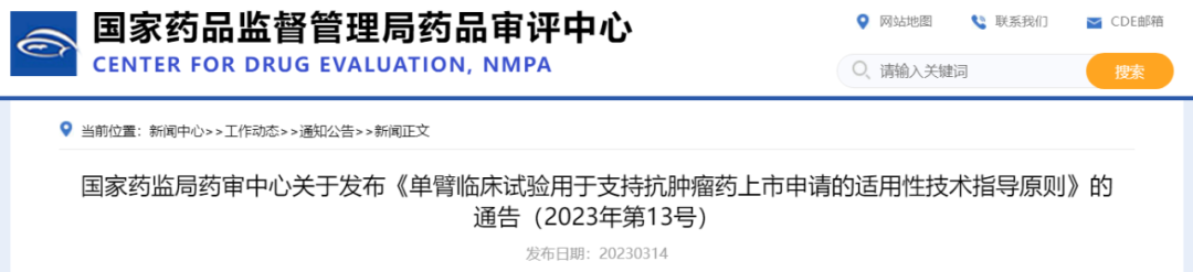 《单臂临床试验用于支持抗肿瘤药上市申请的适用性技术指导原则》