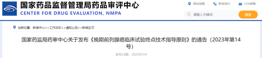 《晚期前列腺癌临床试验终点技术指导原则》