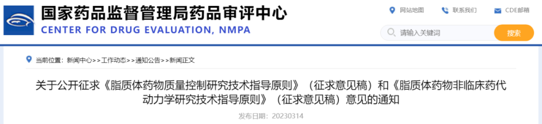 为了更科学地引导药物研发,探索建立脂质体药物监管标准,药审中心在中国药品监管科学行动计划第二批重点项目“纳米类创新药物、医疗器械安全性有效性和质量控制评价研究”(药物部分)的研究中,针对脂质体药物进行重点研究,通过前期广泛调研,在项目子课题组撰写初稿的基础上,药审中心撰写形成了《脂质体药物质量控制研究技术指导原则》《脂质体药物非临床药代动力学研究技术指导原则》征求意见稿,现公开征求意见和建议。