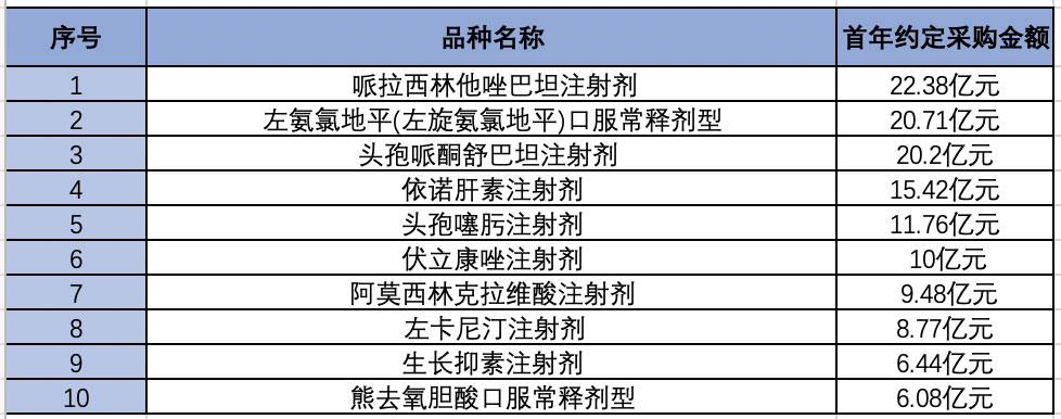 按照首年约定采购金额,哌拉西林他唑巴坦注射液为22.38亿元;头孢哌酮舒巴坦注射剂为20.2亿元。