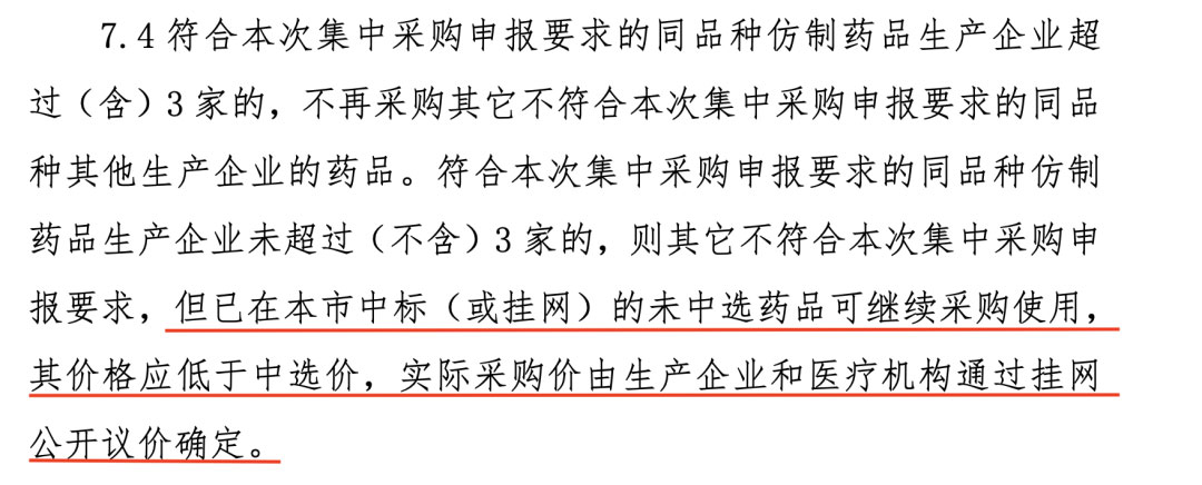对于已在上海中标(或挂网)的未中选药品可继续使用,但价格低于中选价。